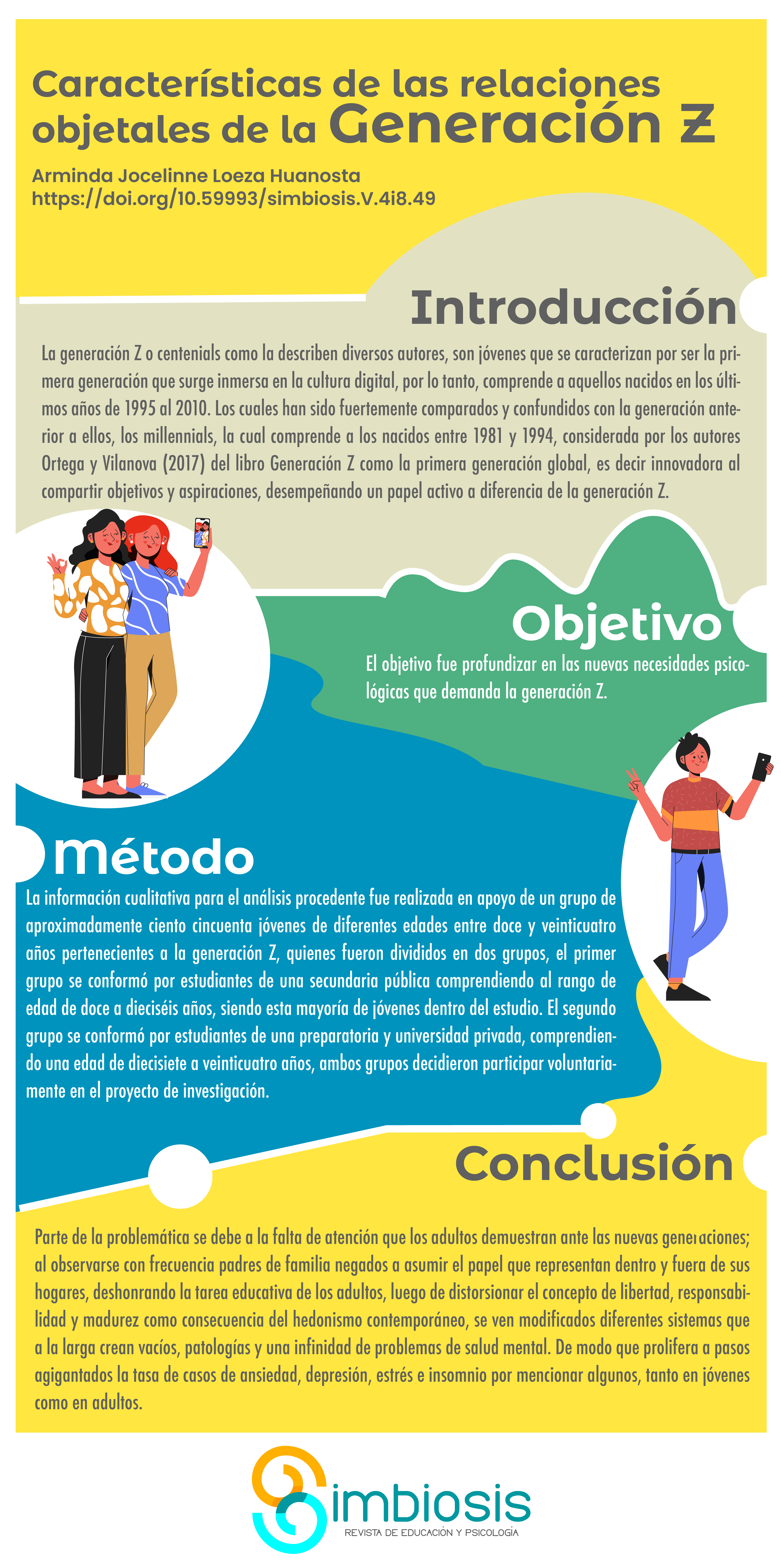 In this work, the object relations of generation Z and the changes it has undergone in recent modernity were qualitatively examined. This has gradually dehumanized man, alienating him more and more from the functions of the ego, the psychological impact of which has been alarming for generations. In the particular case of generation Z, it was found that the meaning of life has been replaced by fleeting sensations and a marked obsession for the pursuit of pleasure, which has destructured relationships and different organizations. Consequently, an in-depth analysis of the challenges faced by Generation Z, as well as the psychological needs and vicissitudes presented by these young people in response to modernity, was carried out with the support of the TRO test (Phillipson’s Test). Finally, it was observed that the problem is increasing, with the development of new pathologies.