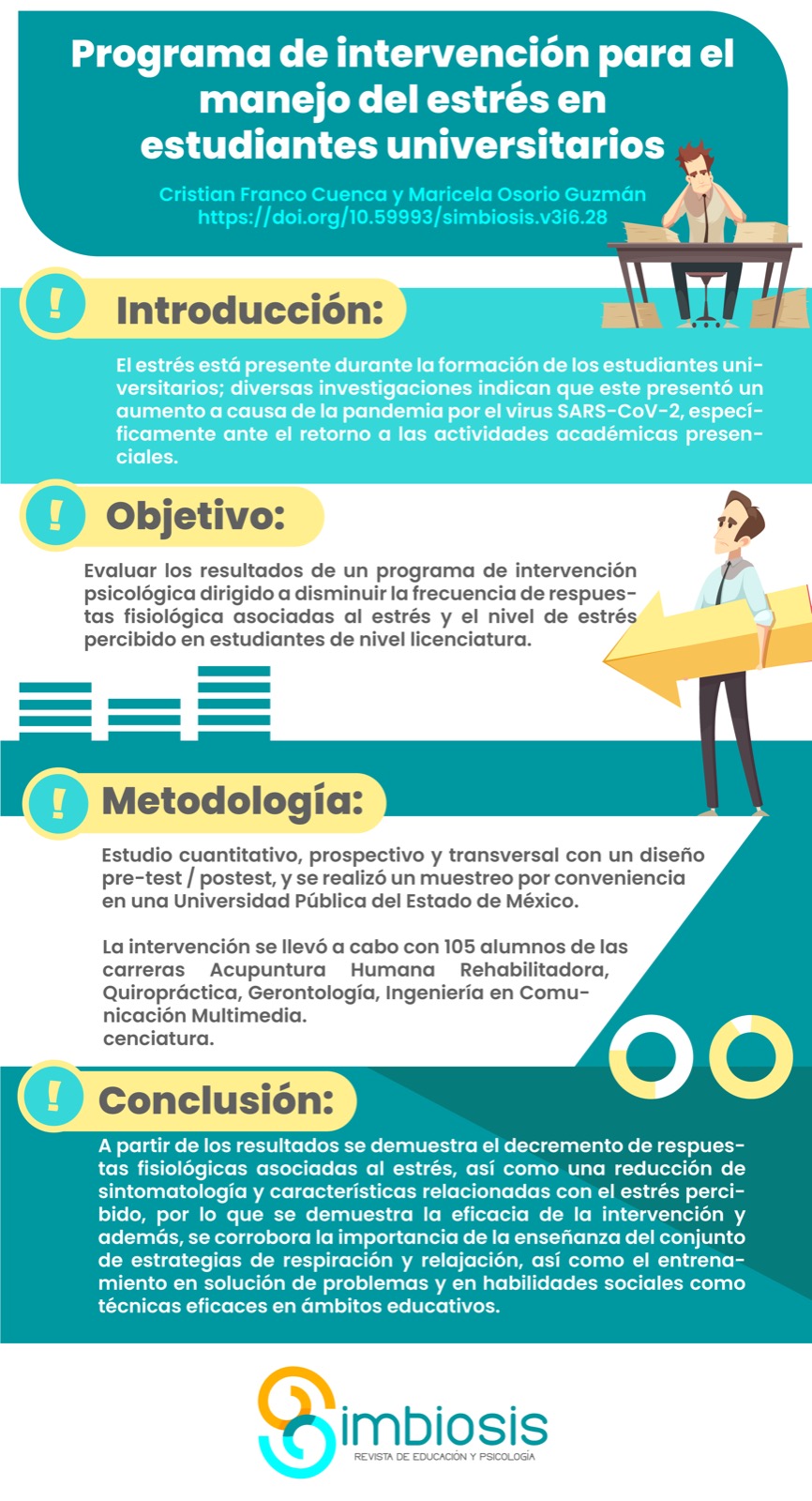 Cristian Franco Cuenca, Maricela Osorio Guzmán Programa de intervención para el manejo del estrés en estudiantes universitarios Intervention program for stress management in university students PDF HTML EPUB Infografía 📄 Pág. 25-35