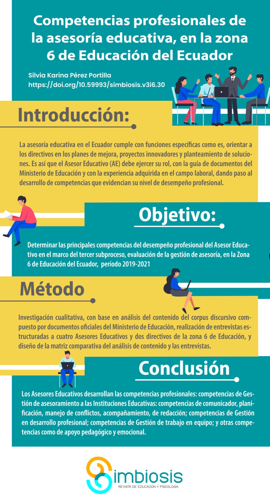 Silvia Karina Pérez Portilla Competencias profesionales de la asesoría educativa, en la zona 6 de Educación del Ecuador Professional competences of the educational advisory, in zone 6 of Education of Ecuador PDF HTML EPUB Infografía 📄 Pág. 50-63